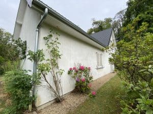 These are videos of the part of the land behind the house. It is a small wood of 650 square meters on a slope. We will put a small basket ball court of 15 meters by 11 meters on the left side of the current woods. We will cut some trees to make space. Between the back of the house and the woods there is a flat surface of 7 meters on a length of 25 meters.